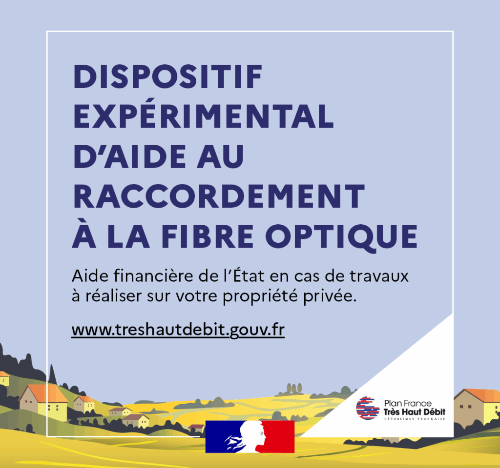 L’État propose désormais une aide financière destinée aux particuliers dont le raccordement à la fibre optique a échoué en raison de travaux à réaliser sur leur propriété (gaine bouchée, tranchée, regard à créer…). Cette mesure vise à accompagner la généralisation du Très Haut Débit, notamment dans les communes concernées par la fermeture du réseau cuivre.